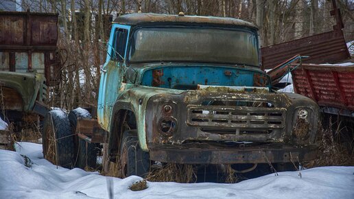 Вернемся к Тейковскому ЖБИ и его окрестностям. В прошлой части я написал о железнодорожном парке предприятия в этот раз рассмотрим поближе его автопарк. Так что вперед на прогулку по промзоне. Разбросанных грузовиков тут хватает. по большей части продукция авто завода "ГАЗ" есть еще Камазы, отдельно валяющиеся кабины и всевозможного рода прицепы. Поздняя осень начало зимы и всюду запах полыни вперемешку с отработанным маслом. Детали. В кабинах селится мох, пожухлые листья падают внутрь- подготавливая почву для его роста...