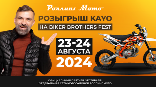 Всех мотолюбителей ждем на фестивале BIKER BROTHERS 2024! Каждый год на мероприятии собираются сотни мотоциклистов и ценителей мотоциклетной культуры, чтобы весело провести время, пообщаться и погрузится в драйвовую мотоатмосферу. Приезжайте всей семьей, организаторы приготовили насыщенную программу и для взрослых, и для детей, где будет много музыки, конкурсов, силовых шоу и даже "NIRVANA" с симфоническим оркестром в исполнении группы Smells Like Symphony. Роллинг Мото разыгрывает на фестивале питбайк KAYO Basic K125EM - один из самых популярных питбайков в России...