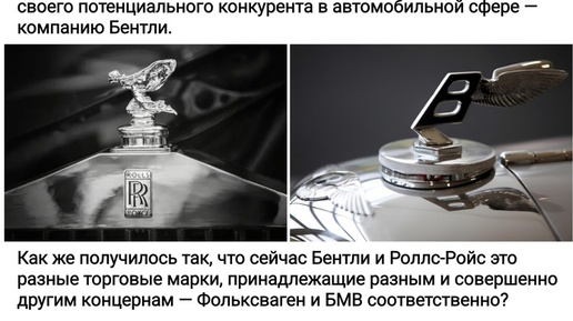 В 1931 году технологии и производство Бентли не интересовали Роллс-Ройс, поэтому от компании по сути в итоге остались только торговая марка и хорошая репутация. Роллс-Ройс продолжал выпуск своих автомобилей и под своей маркой, и под маркой "Бентли". Как правило под маркой "Роллс-Ройс" — роскошные автомобили, а под маркой "Бентли" спортивные. В 1971 году Роллс-Ройс обанкротился и был разделён на авиационное и автомобильное производства. Авиационное производство было национализировано британским правительством,...