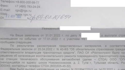 В связи с увеличением сроков поставки запчастей, СК Росгосстрах аннулирует направления на ремонт!!!
