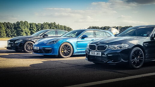 Издание Top Gear решило провести свой тест и выяснить, кто же быстрее на прямой среди трёх «горячих» немецких автомобилей: BMW M5, Mercedes-AMG E63 S, Porsche Panamera Turbo S E-Hybrid. Шестое поколение седана БМВ М5 было представлено в 2017 году. Под капотом полноприводной BMW M5 F90 находится V-образный восьмицилидровый двигатель объёмом 4,4 литра с парой турбин, что позволяет развивать 600 лошадиных сил и 750 Нм крутящего момента. Максимальная скорость «эмки» ограничена электроникой на 250 км/ч, но опционально можно отключить ограничитель и разогнать авто до 305 км/ч...