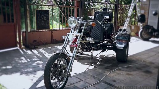 Это ужу вторая моя попытка построить трицикл своими руками. Ввиду того, что мой трицикл по задумке должен был отвечает идеологии классического чоппера, его отделку я делал с особой тщательность. Сразу скажу, что передняя вилка с большим углом наклона негативно сказалась на управляемости и маневренности аппарата. Особенно это заметно на скоростях свыше 100 км/ч. Кроме того, на такой скорости при попадание в серьезную дорожную выбоину есть опасность разрушения рычагов. Основой машины служит пространственная сварная рама из трубчатых элементов...