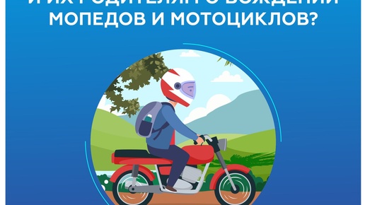 С какого возраста разрешено управление мопедом, лёгким и обычным мотоциклом? Родители, помните о том, что для управления двухколёсным транспортом нужны права! Если подросток катается без них, то вас обяжут платить штраф, а транспортное средство могут забрать сотрудники полиции. Основные правила: ● Управлять мопедом (категория М) можно с 16 лет. ● Управлять лёгким мотоциклом и квадроциклом с объёмом двигателя до 125 куб. см (категория А1) также могут лица с 16-летнего возраста. ❗️Ездить на мотоцикле (категория А) можно только с 18 лет...
