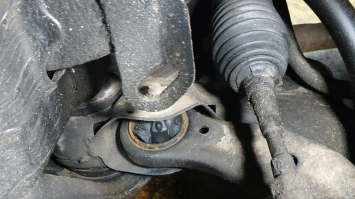 Эта работа на той же Toyota Alphard, что фигурировала в прошлой статье. Теперь надо заменить задний сайлентблок на передних рычагах, заменить пыльники, отбойники на амортизаторах, тяги стабилизатора, тормозные колодки передней подвески. Чтобы добраться до сайлентблока надо попутно снять много всяких элементов подвески. Начнем с правой стороны, ослабляем крепление рычага. Шаровую опору проще открутить снизу. Так легче. Надо снять правую подушку двигателя, что бы при демонтаже рычага она не мешала откручивать крепеж...