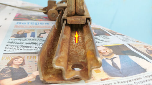 Ржавчина на трубе, но это половина беды. Ржавчина на салазках - это уже серьёзней Трещина на поперечине в районе сварки с права , оторванные точки с лева. Готовимся исправлять . Поджал струбциной . Проварил с обеих сторон для надёжности . Пришла очередь салазок, которые не хотели двигаться руками никак...