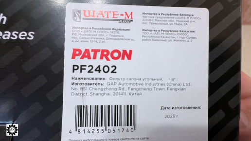Детальный обзор: Угольный салонный фильтр PATRON PF2402 (Бюджетный аналог для Mazda)