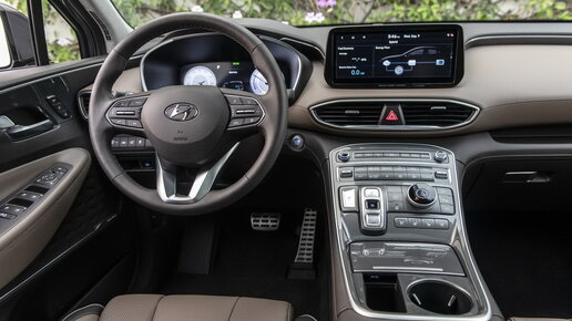 Помимо изменённой внешности кроссовер получил и новую техническую начинку. А всё потому, что ему пришлось переехать на совсем ещё свежую платформу N3, которую прежде успел освоить Kia Sorento. Каких-то серьёзных эргономических проколов в Санте нет — кроме разве что кнопочного селектора «автомата». К нему надо долго и без удовольствия привыкать. А вот обзорность хороша безоговорочно: передние стойки умеренной ширины, зеркала крупные. На дорогих версиях High-Tech и Calligraphy есть камеры кругового обзора с отличной картинкой...