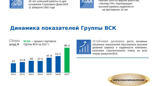 Рейтинговое агентство «Эксперт РА» подтвердило рейтинг финансовой надежности страховой компании «ВСК» на уровне гиАА. Прогноз по рейтингу — стабильный. САО «ВСК» — крупный универсальный страховщик, Основными...