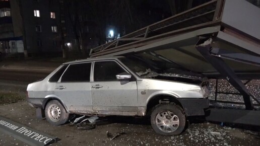 В Липецке пьяный 18-летний водитель без прав врезался в остановку на ВАЗ-21099