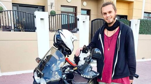 Парень спас бродячего кота и отправился с ним в путешествие на мотоцикле