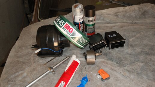 Готовим агрегат дальше… Прикупил печку от 2108 и провода с клеммами для нее - будем внедрять. Сопла от пятерки что ли, синхронизируем с кожухом вентилятора (или как то так) для того, чтобы и водитель и пассажир могли регулировать поток горячего воздуха в ноги. Опора КПП новехонькая и нормальный ключ для торцевых головок, а то при разборе раздатки китайский ключ был успешно свернут в калач. Ну и так, для марафету - баллончики с краской фильтры и ремкомплект кулисы: Давно езжу с мыслью великой, проверить задний сальник коленвала и подшипник - масло течет из движка, поэтому повод есть...
