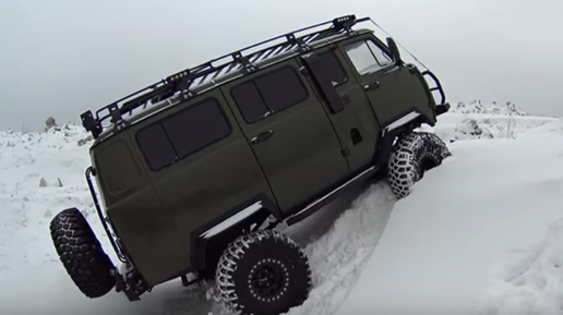 УАЗы сильно затюненные вам очень нравятся, не правда ли? Сегодня будет очень сильно затюненный УАЗ. Это УАЗ Буханка на 37-х колёсах, и в эту машину вложено более двух миллионов рублей. Сейчас мы её выгоним на площадочку, где будет удобно снимать, и покажем вам, что же с этой машиной было сделано. Но это вообще монстр настоящий! Сейчас будем детально разбираться. Уже видно, у нас здесь есть бэдлоки. У нас здесь есть система подкачки колёс, то есть из этой машины не надо вылезать, чтобы колёса накачать...