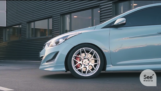 Hyundai Elantra - седан С класса с обычным 1.6 литровым двигателем на 132 л.с. Динамика разгона, не особо впечатляет ~10,7 секунд до 100 км/ч, при максимальной скорости в ~200. Но что будет, если за этот автомобиль возьмутся специалисты из CMS RACE ? Во первых, стоковый двигатель Elantra естественно свапается на 4G63T от "Mitsubishi Lancer Evolution IX" с кованными шатунами и поршнями, и на этом моторе устанавливается мощная турбина Garrett GTX3076. Мотор выдаёт ~500 л.с. но имеет огромный потенциал и мощность может возрасти до невероятных ~800 л...