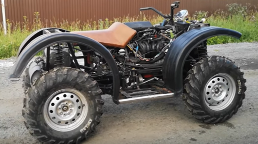 Всем привет !!! Сегодня я хочу рассказать об кулибиных которые сделали квадроциклы. Чтобы собрать квадрик люди используют в основном мост от автомобиля ока или от мотороллера редуктор. Но первые делали из мотоцикла Урал, а сегодня речь пойдет о Романе Кулешове он сделал квадроцикл из двигателя от тойоты 1.3 объем двигателя 4 wd коробка автомат. Замеряли разгон до 100 км он вышел в 10 секунд, но это не смотря на то что дифференциал у него не заварин...