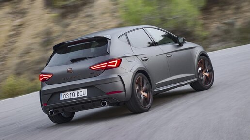 Еще один быстрый Seat Leon? Самый быстрый, по сути. Это новый Seat Leon Cupra R. Это третий автомобиль, который носит имя и удобно самый мощный. Его 2,0-литровый турбомотор теперь производит 306 л.с., что на 10 л.с. по стандарту и достаточно для 0-62 миль в час в 5.8 сек. И максимальной скорости 155 миль в час. Эта фигура власти такая же, как и в VW Golf R, только здесь она пробивается только передними колесами. Тогда должны быть изменения шасси? Колеса более негативно развалены, чем стандартные...