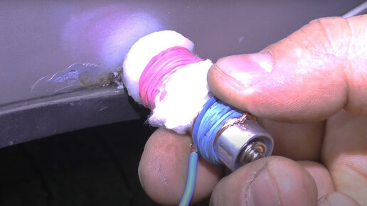 Простой способ оцинковки мест сколов на кузове автомобиля при помощи обычной батарейки