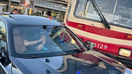 Трамвай протаранил BMW на улице Савушкина в Петербурге