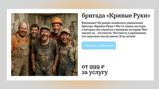 В Москве предлагают услуги бригады мастеров с «кривыми руками»
