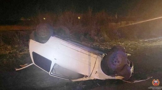 Легковушка на белгородской трассе ушла в кювет и улеглась на «спину»