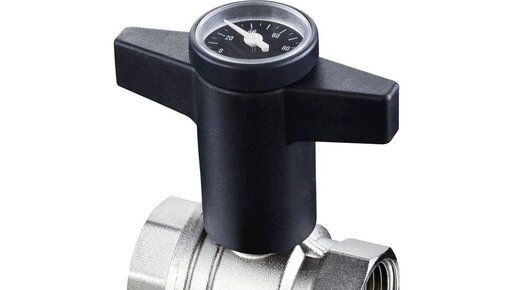 Обычный резьбовой шаровый кран знаком всем. Но иногда он неудобен из-за габаритов, поэтому существуют нестандартные краны - со встроенными фильтрами, термометрами, угловые краны. Рассмотрим различные способы их применения, возможно, Вы найдете для себя что-то удобное. 1) Шаровый кран со встроенным термометром. Такие краны очень удобны в котельных - ведь там есть и что закрыть и где измерить температуру. С таким краном Вам не потребуется покупать дополнительный тройник для термометра - он встраивается в ручку крана, да и меньше соединений, а значит и меньше возможностей протечки...