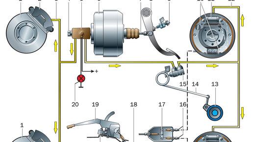 Необходимость такой замены обычно становится для автовладельца неожиданностью, а внятное объяснение мало кто дает. Мы - даем. Итак, тормозная система. Она на легковых автомобилях повсеместно гидравлическая. Плохо это или хорошо, но на сегодняшний день это так. Схема тормозной системы выглядит примерно так: В зависимости от конкретного автомобиля, в системе могут также присутствовать блок АБС, аккумулятор давления и прочие дополнительные устройства, однако для нашей сегодняшней беседы они не важны...