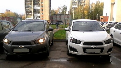Chevrolet Aveo 2014 и 2012 года выпуска. Один серый, другой белый... Две веселые овечки. Моя последняя бу-шная машина была Нива Шевроле, она пошла рыжиками, и я ее продал. Поехал смотреть новую легковушку, выбор остановил на Шевроле Авео. До сих пор не жалею о своем выборе, проехал на ней 60 тыщ, вот первый раз в конце лета в нее полезу - буду менять колодки. Дело было в конце лета, почти 3 года назад. Сижу в тачке, смотрю, - идет она, моя первая бывшая, лет 10 не виделись. Вышел, поздоровался, поболтали...