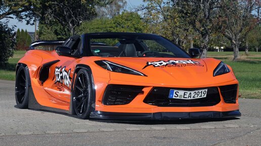 Изначально этот открытый Chevrolet Corvette C8 получил широкий обвес от японской компании Pandem, после чего попал в руки немецких тюнеров Bader. Помимо расширенных крыльев, «Корвету» добавили агрессии передний спойлер, боковые юбки с вертикальными ребрами, задний диффузор и фиксированное антикрыло. Вдобавок, спорткар получил 10-спицевые 20- и 21-дюймовые колесные диски на передней и задней оси соответственно. В результате получился яркий, привлекающий внимание автомобиль с оранжевым кузовом и черными акцентами...