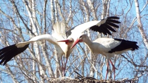 Белые аисты вернулись в городище Савкина Горка в «Михайловском»
