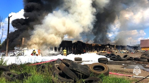 Торговые павильоны и шиномонтаж горят на трассе М5 в Башкирии