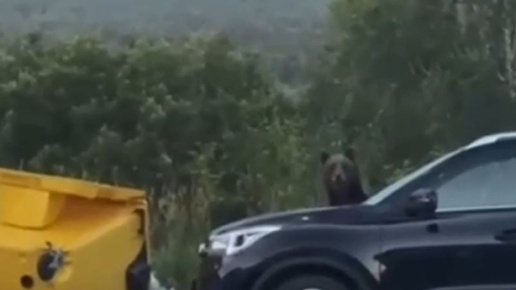 В Башкирии медведь решил поиграть в «гляделки» с сотрудником шиномонтажа
