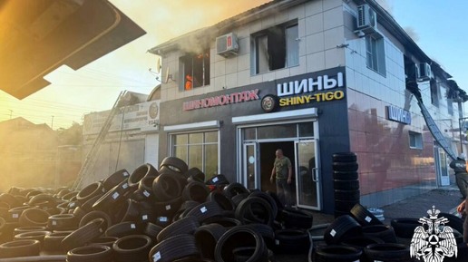 Магазин покрышек с шиномонтажом загорелся в Краснодаре