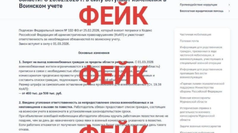 В интернете появился поддельный скриншот якобы с сайта правительства Мурманской области о введении с 1 марта ограничений на выезд для военнообязанных. Информация не соответствует действительности.