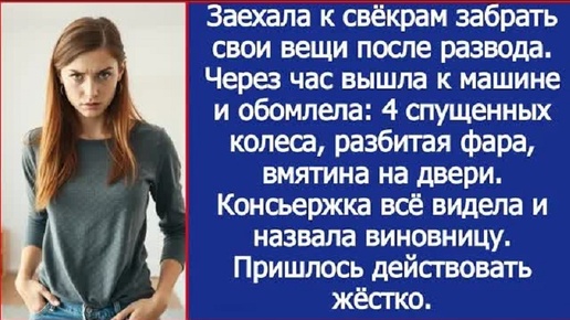 Заехала к свёкрам забрать свои вещи после развода. Вышла к машине и обомлела: 4 спущенных колеса.