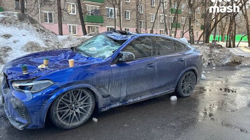 🧊 Глыба льда упала на BMW X6 Competition стоимостью более 20 млн рублей на Окружном проезде в Москве