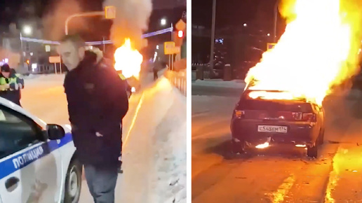 Мужик решил поджечь свою машину прямо на глазах у полицейских - так будет лучше, подумал он. Вот так прошли праздники в Бурятии - сейчас обо всем подробней. У кого-то праздники прошли за салатами "Оливье" и шампанским, а кто-то - "отжигал" по полной. Как говорится, если ваша вечеринка не похожа на эту - то даже не зовите меня на нее! Чтобы сразу не раскрывать всю суть произошедшего, давайте буду вводить вас в курс дела по порядку. От этого, концовка будет выглядеть только более эпично. А началось всё с того, что уже ближе к утру патруль ДПС остановил "ладу" - решили проверить водителя...
