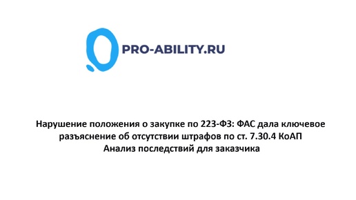 7.30.4 КоАП Анализ последствий для заказчика ФАС России разъяснила, что штраф по статье 7.30.4 КоАП не применяется за нарушение собственного Положения о закупке по 223-ФЗ. Читайте детальный разбор: почему это важно, какие риски остаются, примеры из практики и таблица ответственности...