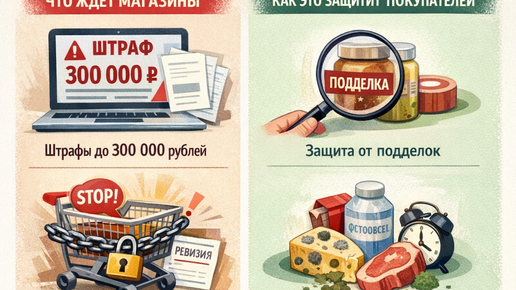 В России готовится важное изменение, которое напрямую касается всех, кто покупает продукты и другие товары в магазинах. В Госдуму внесен законопроект № 1096260-8 об «автоштрафах» – автоматических штрафах за продажу просроченных и неправильно маркированных товаров. На первый взгляд это звучит как сугубо юридическая новость «для бизнеса». Но на самом деле речь идет о вашей безопасности как потребителя: о том, что вы кладете себе в корзину и на стол, и о том, станет ли меньше просрочки и «серых» продавцов...