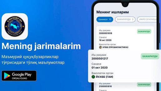 Узбекистан, Ташкент – АН Podrobno.uz. МВД запустило официальное приложение для проверки и оплаты штрафов – Mening jarimalarim, сообщает корреспондент Podrobno.uz. После скачивания из Google Play пользователю будет необходимо зарегистрироваться в приложении через Единую систему идентификации OneID. После этого он получит полную информацию о своих штрафах. В приложении можно скачать административный протокол, просмотреть историю оплаты штрафов, узнать, когда будет рассмотрено административное дело и многое другое...