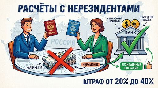 Расчёты с нерезидентами при покупке и продаже недвижимости или автомобилей в России регулируются валютным законодательством. ФНС фиксирует рекордный рост нарушений: более 136 000 дел в 2024 году с общей суммой штрафов 5,3 млрд ₽. Штраф за наличный расчёт с иностранцем без ВНЖ составляет от 20 до 40% от суммы сделки. Обзор охватывает судебную практику от Москвы до Дальнего Востока, анализирует особенности новых территорий (ДНР, ЛНР, Запорожская, Херсонская области) и прогнозирует развитие ситуации на 2026–2027 годы...