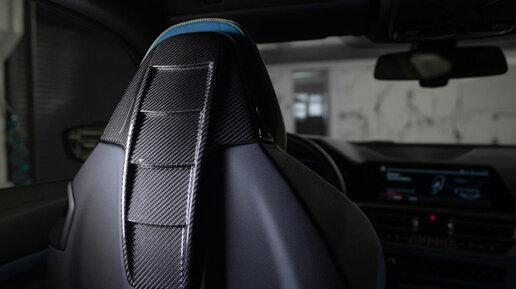 Накладки из карбона на подголовники сидений БМВ (BMW) M3, M4, M8, M8 Gran Coupe