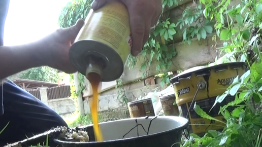 Скоро уже зима и как известно сани готовят летом . Решил обработать днище. Последняя операция была 5 лет назад . Решил почистить балочку переднюю и обнаружил очень неприятный косяк . Дырку надо срочно варить . Короче нарезал пластинок из металла согнуть в профиль балки было не очень удобно . А так сегментами заварил ее . ; лепестка и проварил потом все вместе . Обстучал шлак, почистил швы И приступил к обработке днища . Варил жижу из пушечного сала, гидроизоляции фундаментов и мовили . Такая смесь...