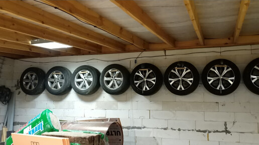 Моя реализация СИСТЕМЫ ХРАНЕНИЯ КОЛЕС на стене и на стеллаже/полке в ГАРАЖЕ