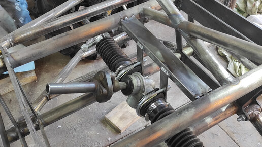 Рулевая рейка для багги выполнена на основе аналогичной детали от ВАЗ-2108. И по сути рейка осталась такой же, только сделали ее симметричной, обрезав все лишнее, а там, где нужно нарастив. 1. Корпус – отрезали все лишнее. По краям сделали проточки: снаружи под пыльники и скобы крепления, внутри под втулки из капролона. 2. Рулевая рейка – так же было отрезано все лишнее. Для симметрии с другого края наварили втулки, которая была предварительно посажена в натяг. 3. Капролоновые втулки – изготовили отдельно...