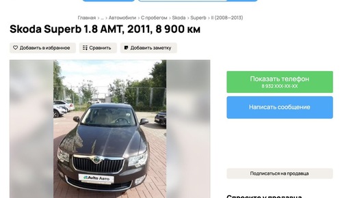 В Белгородской области на продажу выставили Skoda Superb 2011 года, сообщает «Российская газета». Автомобиль второго поколения за 14 лет проехал только 8900 км и находится в идеальном состоянии. Кузов «капсулы времени» выкрашен в тёмно-коричневый металлик. Автомобиль не эксплуатировался зимой и всё время хранился в гараже. «Суперб» представлен в комплектации Elegance, в которую входят: датчики дождя и света, климат-контроль на три зоны, круиз-контроль, ксеноновые фары, легкосплавные...