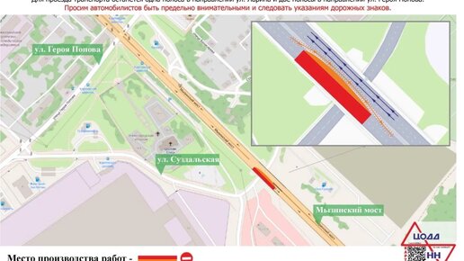 В Нижнем Новгороде временно изменится схема движения транспорта на путепроводе у Мызинского моста. Об этом сообщили в пресс-службе администрации Нижнего Новгорода. Ограничения будут действовать с 22:00 26 февраля до 8:00 27 февраля 2026 года и затронут участок в направлении улицы Ларина. На время проведения работ дорожные службы перекроют три полосы движения. Проезд транспорта в сторону улицы Ларина будет организован по одной оставшейся полосе, а в направлении улицы Героя Попова автомобили смогут двигаться по двум полосам...