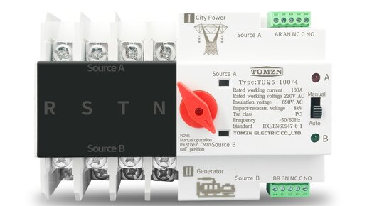 Обзор, что внутри - Реверсивный рубильник TOQ5-125/4P (АВР), 4P 125A 230V TOMZN