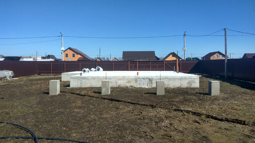 Фундамент без нагрузки простоял 10 месяцев (необходимо время для усадки). В мае начала поднимать стены дома. Этапы формирования 1-го этажа: 1. Чтобы предотвратить поступление влаги от земли, был уложен рубероид посредством разогретой мастики на плиту фундамента (гидроизоляция). 2. Закуплены блоки и клей на внешние несущие стены, а так же для армирования стен металлическая сетка-лента в рулонах (шириной 0.25м). Для удобства кладки стен паллеты с блоками были помещены в центр плиты фундамента. 3. Блоки выкладывались по уровню...