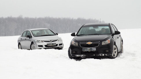 Шевроле Круз, единственный из седанов, который у Шевроле мне более-менее понравился. Посмотрев характеристики, пришел к выводу, что по цене и комплектации он в максималке очень похож на Цивика (речь идет только о седане). Характеристики тоже похожи. Итак, решил сравнить максимального Круза с автоматом и Цивика с автоматом. И так что вышло. -есть датчики света и дождя -диски больше, динамиков больше -топливный бак больше -какой-то экран над мафоном (не знаю что это правда, но в Цивике нет такого)...