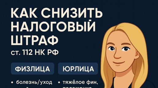По ст. 112 НК РФ любой налогоплательщик — физлицо и юрлицо — может подать ходатайство о снижении штрафа. Если инспекция признаёт хотя бы одно смягчающее обстоятельство, штраф обязаны уменьшить минимум в 2 раза (и можно больше). 👤 Для физлиц — что работает Что заявлять и чем подтверждать: 🏢 Для юрлиц — на что делают упор Что заявлять и чем подтверждать: 🧭 Когда и куда подавать Лучше всего — до вынесения решения по результатам проверки (на стадии рассмотрения материалов по ст. 101 НК РФ) вместе с пояснениями и доказательствами...