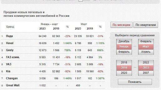 Статистика продаж авто в РФ 2019-2023 год